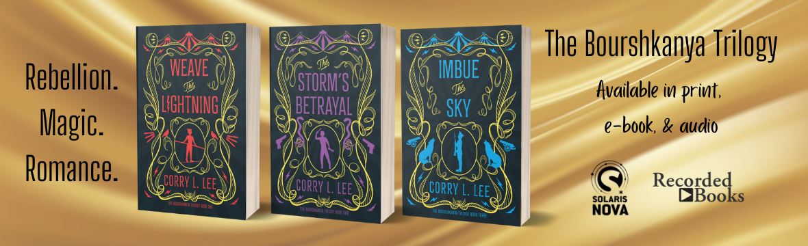 Corry’s Bourshkanya Trilogy, a Russian-inspired epic fantasy series of storm magic, rebellion, romance, betrayal, and hope concludes in April 2026 with Imbue the Sky. Their science fiction short story “Shutdown” won the Writers of the Future award.